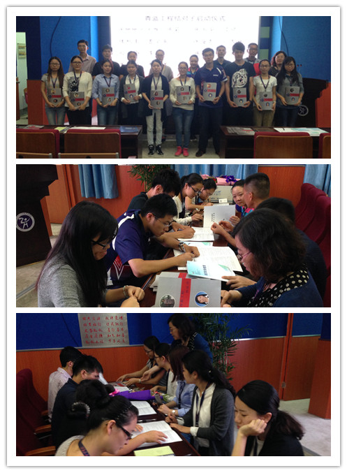 紧接着,是青蓝工程师徒结对启动仪式,十一对师徒上台签约,童孝彬副校长分别为青蓝师徒颁发《新教师发展性教学科研评价手册》和《指导青年教师情况记录册》。再次,是青学会新会员的入会仪式,由童孝彬副校长宣读三大青学会分会人员名单并为11名新会员颁发会员证及《朝着梦想》青年教师发展手册。接着陈莉主任对新学期青学会的具体培养任务工作进行详细解读与布置。最后,童孝彬副校长就学校发展与“五个一”项目的实施,对青年老师们提出了殷切的希望与期待。