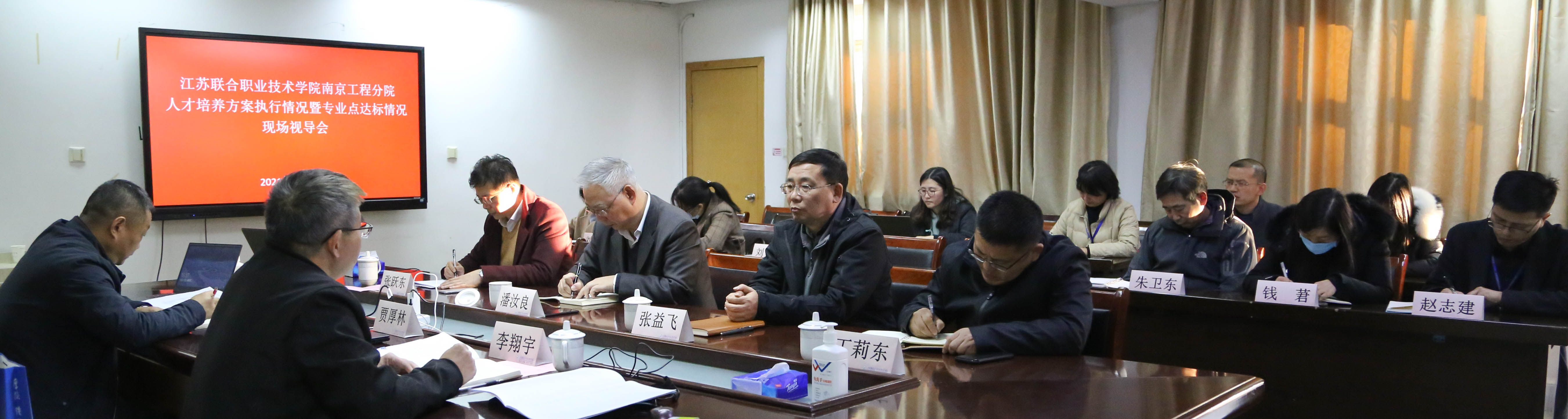 (来源:南京工程分院)2021年11月23日,江苏联合职业技术学院2021年人才培养方案执行情况和专业点达标情况专家组一行三人对我校进行现场视导,专家组由无锡机电分院贾厚林书记、徐州技术学院安德锋副校长、扬州分院教务处李翔宇处长组成。学校党政领导、教务处和各教学系部领导、各专业负责人陪同视导。