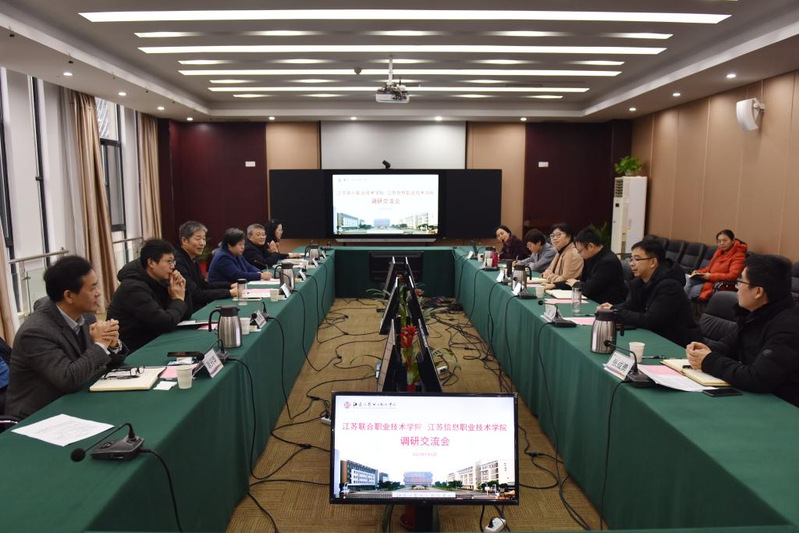2022年1月4日-5日,江苏联合职业技术学院党委委员、副院长杨晓华带队一行六人到常州工程职业技术学院、江苏信息职业技术学院和无锡职业技术学院调研交流。常州工业职业技术学院副校长施福新、江苏信息职业技术学院副院长孙萍、无锡职业技术学院党委副书记周桂瑾等参与交流。