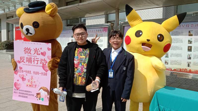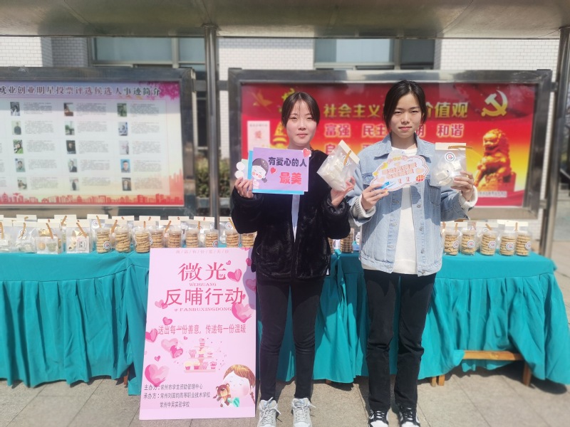 2022年3月4日中午,由常州市资助中心主办,常州刘国钧分院与常州中吴实验学校承办的以“微光反哺行动”为主题的义卖活动在学生食堂门口举行。