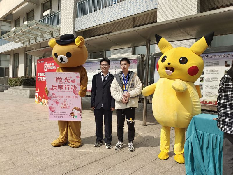 我校各系学生代表对这些商品进行前期的策划、宣传,手工制作了暖心的卡片、可爱的举牌,显眼的大海报。义卖现场更是火力全开进行售卖,活泼的“吉祥物”增添了现场氛围。每一位参与活动的同学都希望尽自己的一份绵薄之力来回馈社会。他们是一道微光,想放出微弱又强烈的光芒来温暖人心。我们国钧学子都充满爱心,充满正能量。