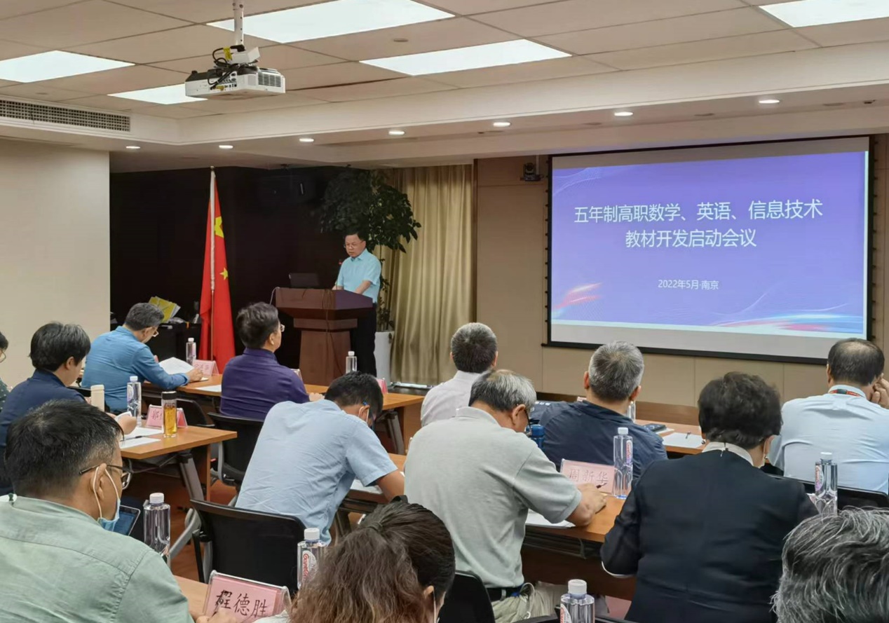 2022年5月24日下午,由江苏联合职业技术学院、江苏凤凰出版传媒股份有限公司、高等教育出版社共同举办的五年制高职数学、英语、信息技术教材开发启动会议顺利召开。会议采用线上、线下相结合的方式进行,江苏联合职业技术学院夏成满书记、刘克勇院长,江苏凤凰出版传媒股份有限公司佘江涛总经理,高等教育出版社贾瑞武副总编辑出席会议并讲话。教育部职业教育发展中心教学教材研究室刘义国主任、山东大学秦静教授、广东韶关学院安晓灿教授作专题辅导报告。五年制高职数学、英语、信息技术教材编写委员会和审核委员会的专家、学者,以及出版社相关学科编辑共80余人参加了会议。会议由江苏联合职业技术学院教学管理处徐伟处长主持。