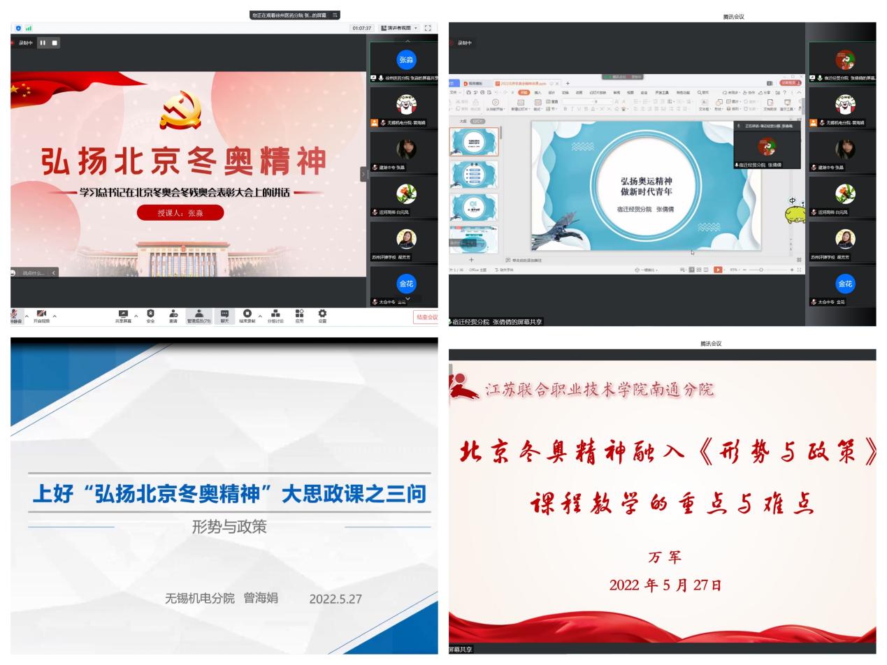 为深入学习贯彻习近平新时代中国特色社会主义思想,贯彻落实《江苏联合职业技术学院思想政治理论课集体备课制度》,加强《形势与政策》课程建设,提升教育教学的针对性和实效性,5月27日下午,学院组织开展了2022年春学期《形式与政策》第一次集体备课活动。本次活动由学院《形式与政策》课程牵头人曾海娟主任主持,江苏联合职业技术学院陶向东副院长、各办学单位《形势与政策》课程牵头人参加。