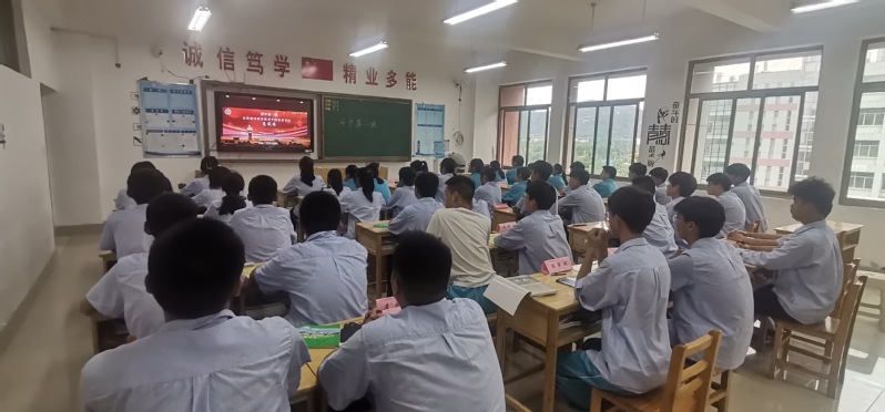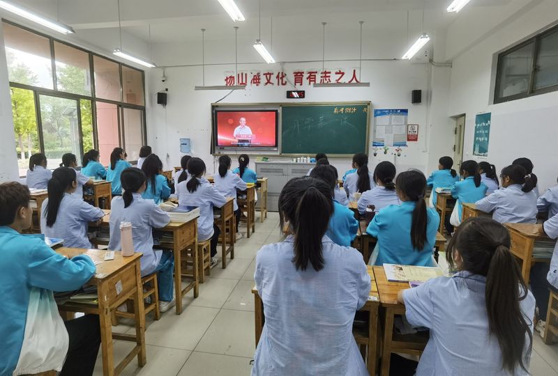 为推进五年制高职学生思政建设工作,落实立德树人根本任务,连云港中专办学点组织五年制高职师生收看了学院党委书记夏成满讲授的“开学第一课”。教职工以院系为单位集中收看,学生以班级为单位集中收看。