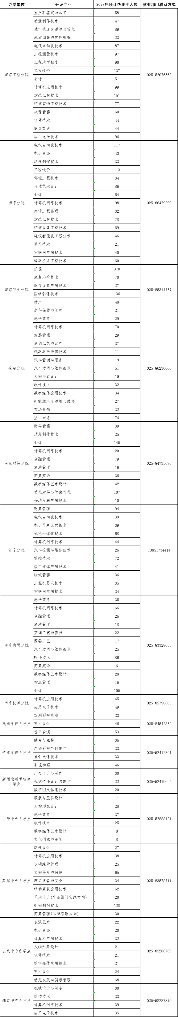 南京市(15所)