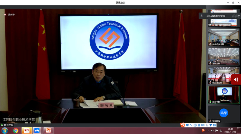 11月22日至23日,2022年学院五年制高职班主任能力提升培训班顺利举办。学院陶向东副院长出席开班仪式并讲话,学院学生管理指导委员会主任委员、徐州经贸分院党委书记、校长宋思运出席开班仪式。开班仪式由学院学生管理指导委员会秘书长、徐州经贸分院副校长刘永主持。