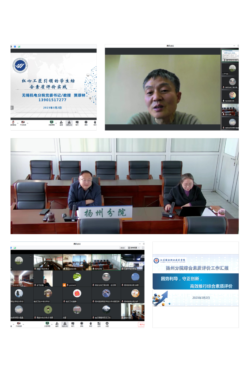 为更好地推进2022级五年制高职学生综合素质评价工作,根据学院要求,淮宿扬协作组于3月2日下午召开线上交流研讨会议,深入推进五年制高职学生综合素质评价工作。会议由淮宿扬协作组秘书长、扬州分院副校长徐荣宽主持,协作组成员学校代表参加了线上会议。