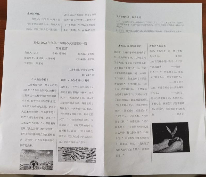 心理小报通过生动有趣的形式向学生传递心理健康知识,帮助学生提高自我管理和调节情绪的能力,增强心理韧性。在心理老师的指导下,学生心理委员积极编写《心灵花园》心理小报。小报内容涉及生命教育和挫折教育,采用简短、易懂、图文并茂的方式传递心理健康知识。