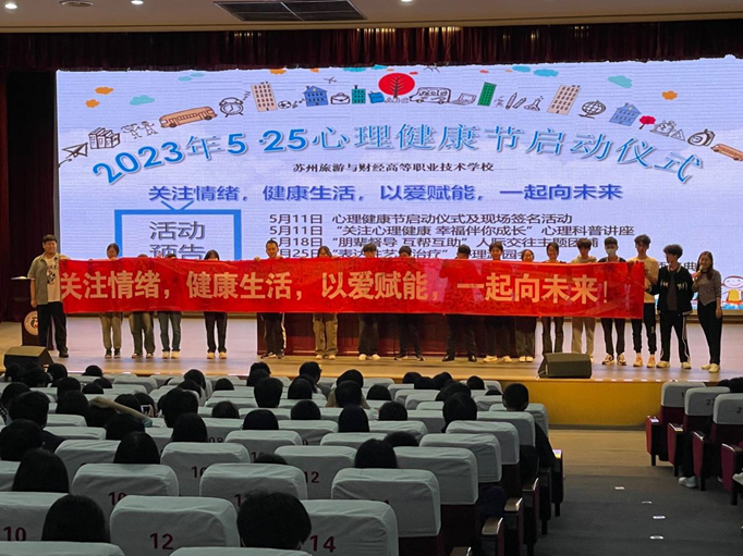 苏州旅游与财经分院2023年5•25心理健康节在明礼堂顺利启动,今年的主题是:关注情绪,健康生活,以爱赋能,一起向未来。