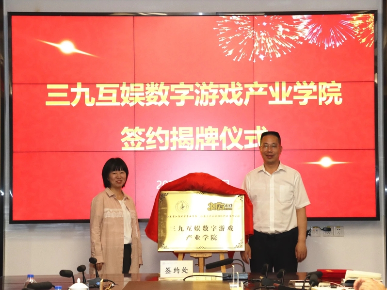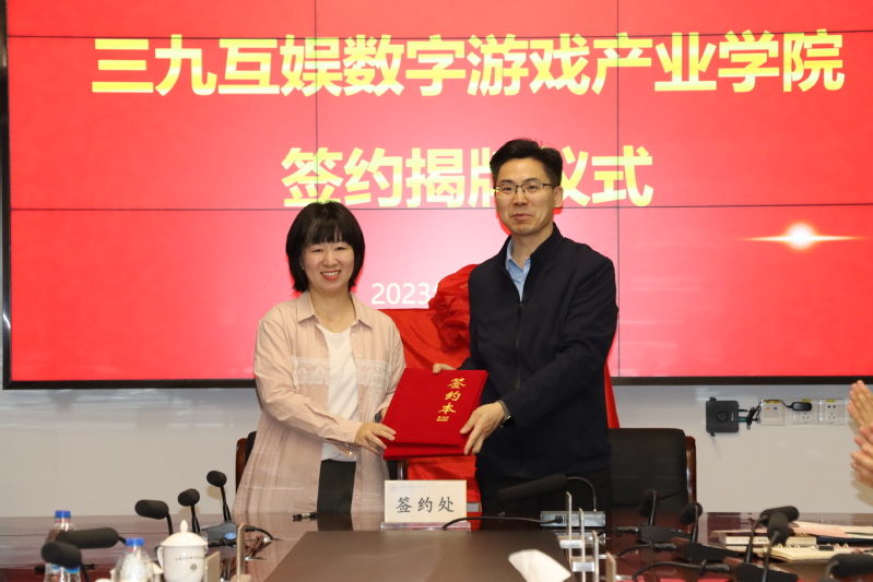 仪式上,李鑫云和吴懋刚代表企、校双方签署《数字游戏产业学院框架合作协议》并为“三九互娱数字游戏产业学院”揭牌。
