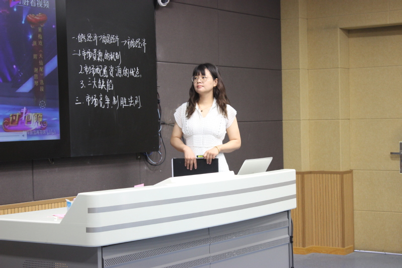 海门分院陆宗琴老师进行了示范课展示,她以《中国特色社会主义》中《市场资源配置》课题入手,基于学生专业、学习基础、思政新课标,对教学内容进行了重构,突破“市场经济”直观认识的局限性。陆老师联系当前社会经济热点和本地实际,通过角色扮演、小组竞赛等活动,引导学生关注社会、关注现实,学以致用,充分体现了以生为本的教学理念。