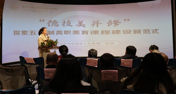 高慰校长带领全体参会人员参观了常州艺术分院的蓝海书岛、蓝海湾书吧、金色沙滩等十余处以海洋为元素设计打造的校园美文化空间,并观摩了在各个美文化空间中开展的茶艺体验、经典电影赏析、随舞展示等一系列沉浸式美育活动,充分展示了学校浸润型美育的丰硕成果。各片区组推荐的南京财经分院、无锡立信分院、徐州高等师范学校办学点、苏州分院、通州分院、连云港中医药分院、淮安生物工程分院以及常州艺术分院等8所办学单位,通过视频展示与交流发言的方式分享了美育工作的开展情况,总结提炼了美育工作的丰富成果。会议还邀请了常州纺织服装职业技术学院党委书记吴访升作题为《新时代职业院校美育新使命新任务》的美育实践专题讲座。同时,参会代表就学院《全面加强和改进新时代五年制高职美育工作实施方案》(讨论稿)和《学院综合素质评价实施方案》中美育的评价指标等内容进行了研讨。