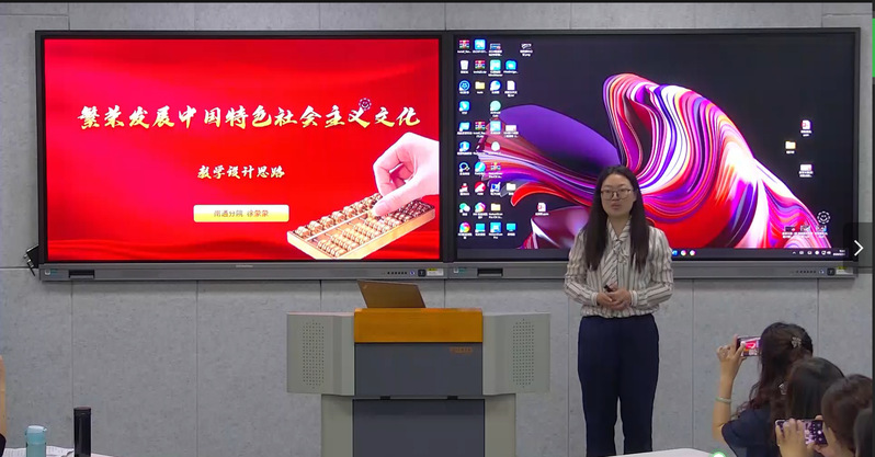 徐州财经分院张峰老师和刘茜茜老师分别进行了《心理健康与职业生涯》和《中国特色社会主义》公开课的展示。淮安生物工程分院陆中静老师、苏州工业园区分院潘乃烨老师、南通分院徐蒙蒙老师等三位名师进行了现场深度评课,并根据公开课的内容进行同课异构说课展示。