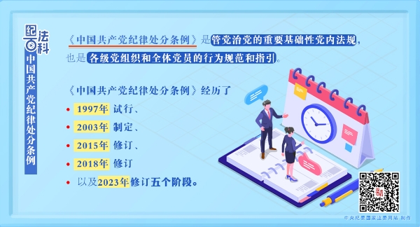 2023年12月,修订的《中国共产党纪律处分条例》印发。修订后条例共158条,与2018年条例相比,增写“坚持自我革命”、“为以中国式现代化全面推进强国建设、民族复兴伟业提供坚强纪律保障”等内容,在指导思想中增写“贯彻全面从严治党战略方针”、“推动解决大党独有难题、健全全面从严治党体系”等内容,突出政治纪律和政治规矩,完善了纪律处分运用规则,加强了纪法衔接,充实了违纪情形,细化了处分规定。
