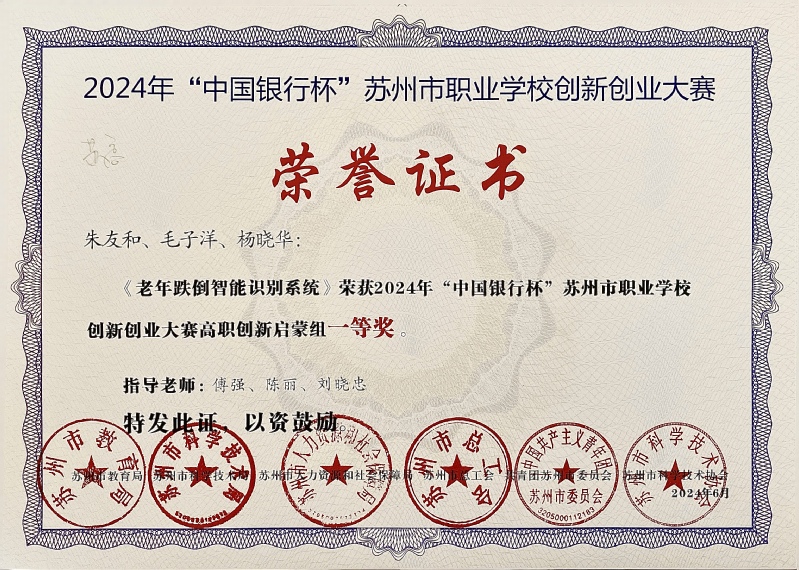 朱友和对自己有着高标准、严要求。在入学之初,他便积极参与了新生技能大赛的培训。在训练中,他勤于钻研,尽管训练内容与课堂所学有所差异,但他并未因此退缩,反而以更大的热情投入到训练中,2024年4月朱友和参加了江苏省职业院校技能大赛“云计算应用”项目,取得省级二等奖的佳绩。在2024年的创新创业大赛中,他们的团队凭借独特的项目构思和严谨的市场调研,从众多参赛队伍中脱颖而出,获得高职组市赛一等奖。这些成绩的获得,不仅提升了朱友和的专业技能,也为他后续的发展奠定了坚实的基础。