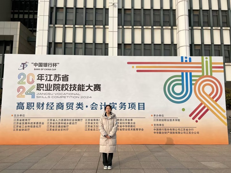 经过不懈的努力,何苏宣的技能水平有了质的飞跃,成绩稳步提升。然而,在关键的模拟测试中,她因过度紧张而频频失误,这不仅影响了个人成绩,也给团队带来了压力。面对巨大的挫败感,她几乎想要放弃。但幸运的是,老师与队友们的鼓励与支持如同温暖的阳光,照亮了她前行的道路。他们分析失误原因,调整备战策略,帮助她重拾自信。在正式比赛中,何苏宣凭借扎实的技能与良好的心态,成功化解了种种挑战,最终荣获江苏省职业院校技能大赛高职组会计实务赛项一等奖的殊荣。