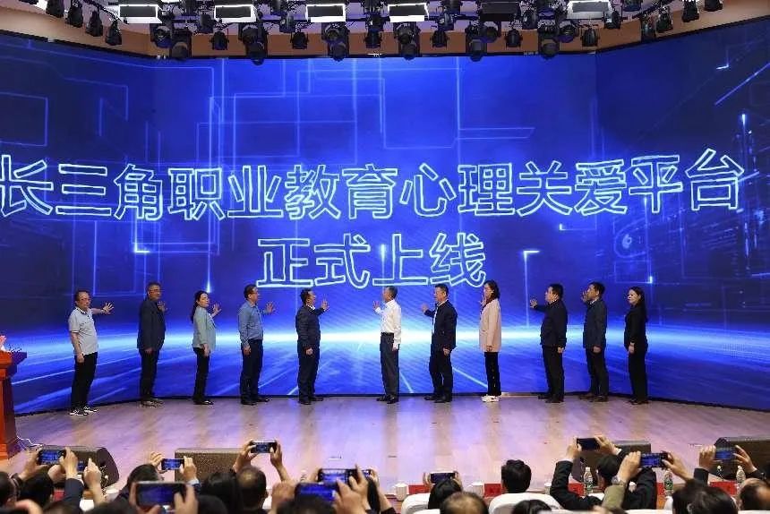 江苏省发改委长三角区域一体化发展处一级调研员罗伟光及南京都市圈十个城市的教育主管部门领导一起见证“长三角职业教育心理关爱平台”上线。