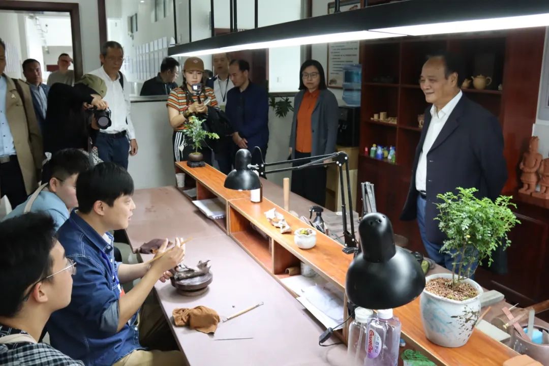 本次活动以“寻根—溯源—对话—传承”为主线,串联起陶都非遗与职教融合的生动图景:第一站“寻根”前墅龙窑,这座世界上现存最古老的紫砂龙窑,不仅是陶都千年窑火的“活化石”,也是学校实践教学的“流动课堂”;第二站“溯源”顾景舟旧居,“壶艺泰斗”顾景舟先生“千锤百炼出精品”的工匠精神,早已融入学校人才培养的基因,成为新时代技能学子的精神灯塔;第三站“对话”陶二厂,这座承载着陶都工业记忆的遗产地,解锁了传统工艺与现代产业的融合密码;第四站“传承”在校园,走进校内名家工坊,见证“产业学院+名家工坊”人才培养模式下的育人成果。四站行程层层递进,既让非遗文脉在实地探访中清晰可触,更让职教赋能非遗传承的实践路径愈发鲜明。