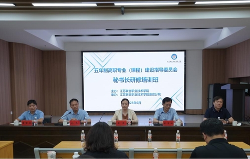 2025年6月25日至26日,学院在淮安举办了五年制高职专业(课程)建设指导委员会秘书长2025年度第一阶段研修培训班。学院党委委员、副院长金玉出席并讲话,学院教学管理处相关人员和25个专(课)指委秘书长共30余人全程线下参与,2025年新设办学单位和恢复招生办学单位170余人通过线上方式积极参会。淮安分院党委书记孙杰致欢迎辞,培训会议由学院教学管理处宋京城处长主持。