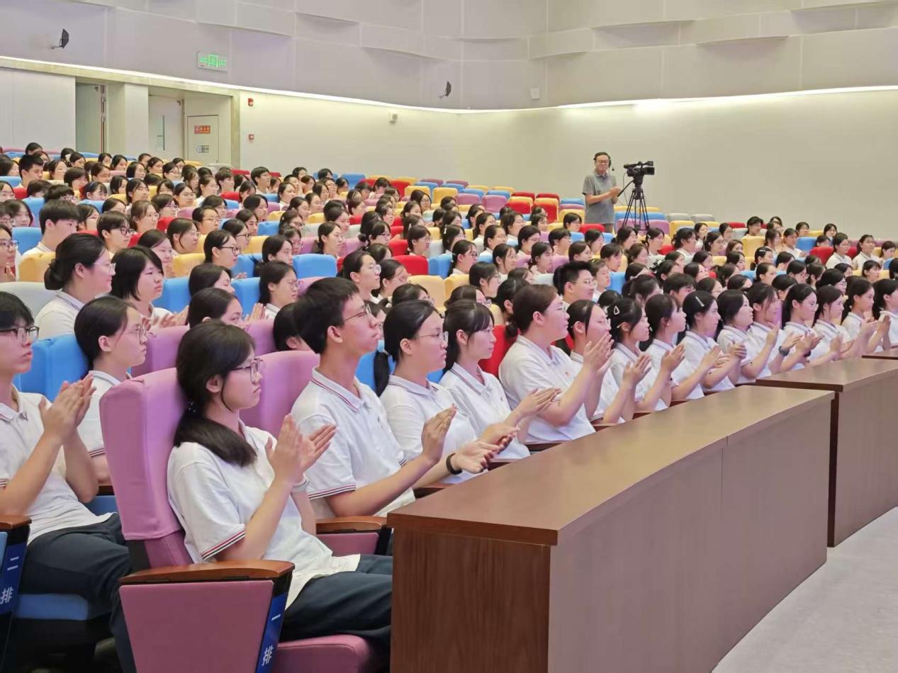 9月19日下午,学院党委书记、院长王伟以“书写青春答卷启航崭新征程”为题,通过线上线下的方式,为2025级新生讲授开学第一课,学院各办学单位共7.6万名新生通过江苏广电总台教育频道在线收看此次实时直播,玄武分院近500名师生在现场听课。