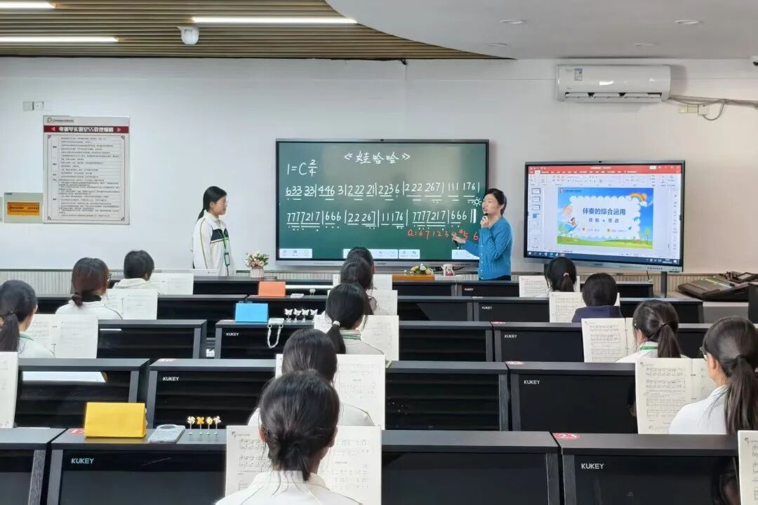 扬州旅游商贸学校办学点戴映老师开设的《伴奏的综合运用》,在弹唱设计的实践过程中巧妙地将艺术教育与思政教育相融合。通过引导学生对儿童歌曲经典作品的赏析,激发学生的家国情怀和文化自信;通过小组协作排练,培养学生的团队精神和沟通能力,实现了“以美育人、以情感人”的教学效果。