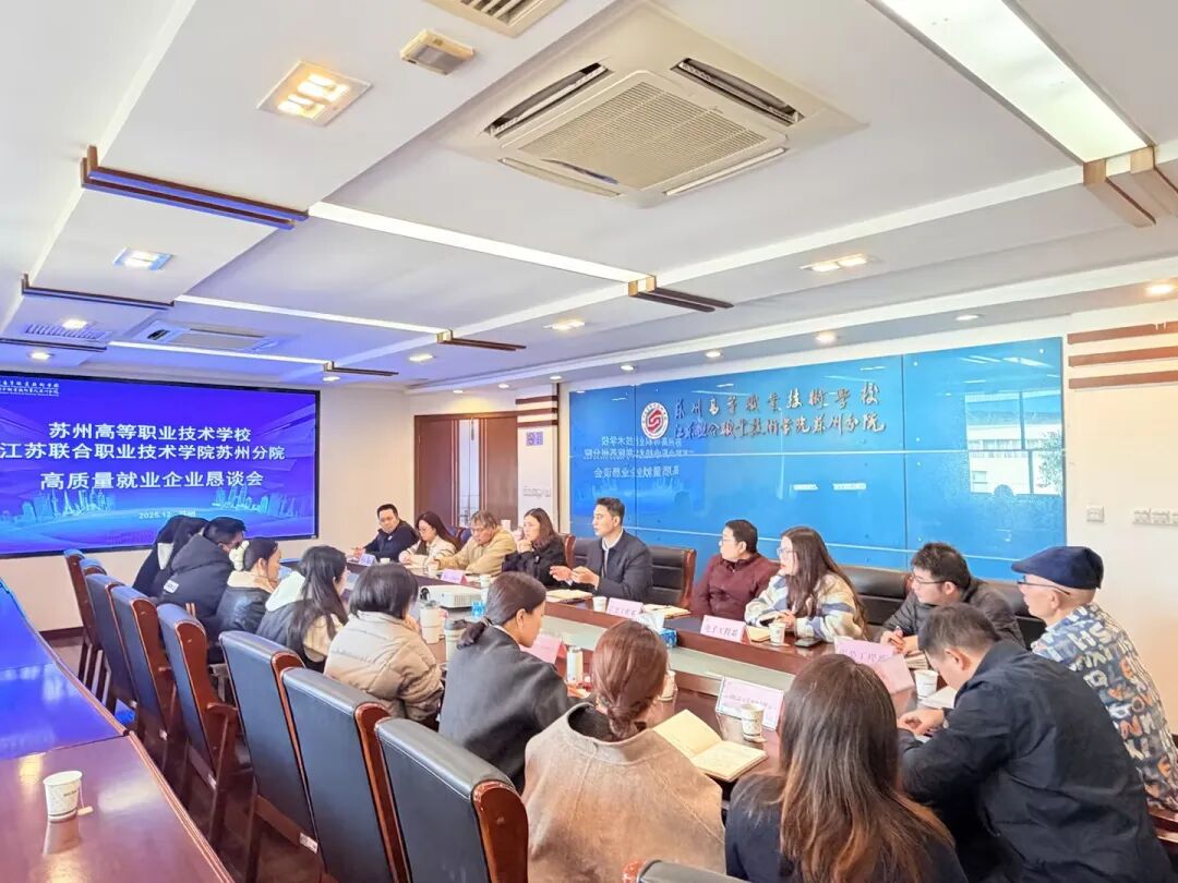 12月18日上午,高质量就业校企恳谈会顺利举办。苏州分院副校长刘畅、校企合作与就业处及各系部就业指导负责人,与10余家覆盖全专业的企业代表齐聚一堂,共商产教融合与人才培养大计。