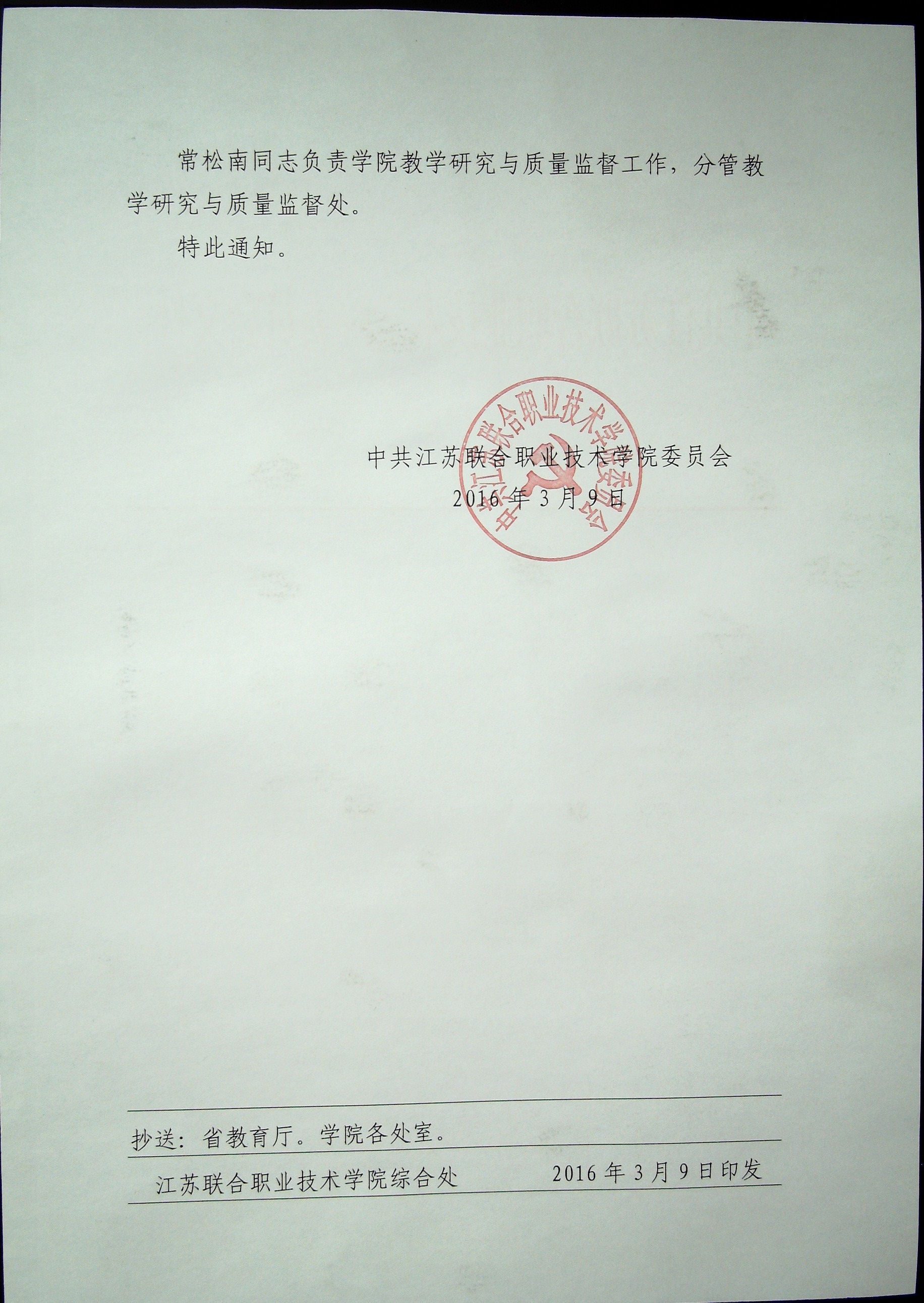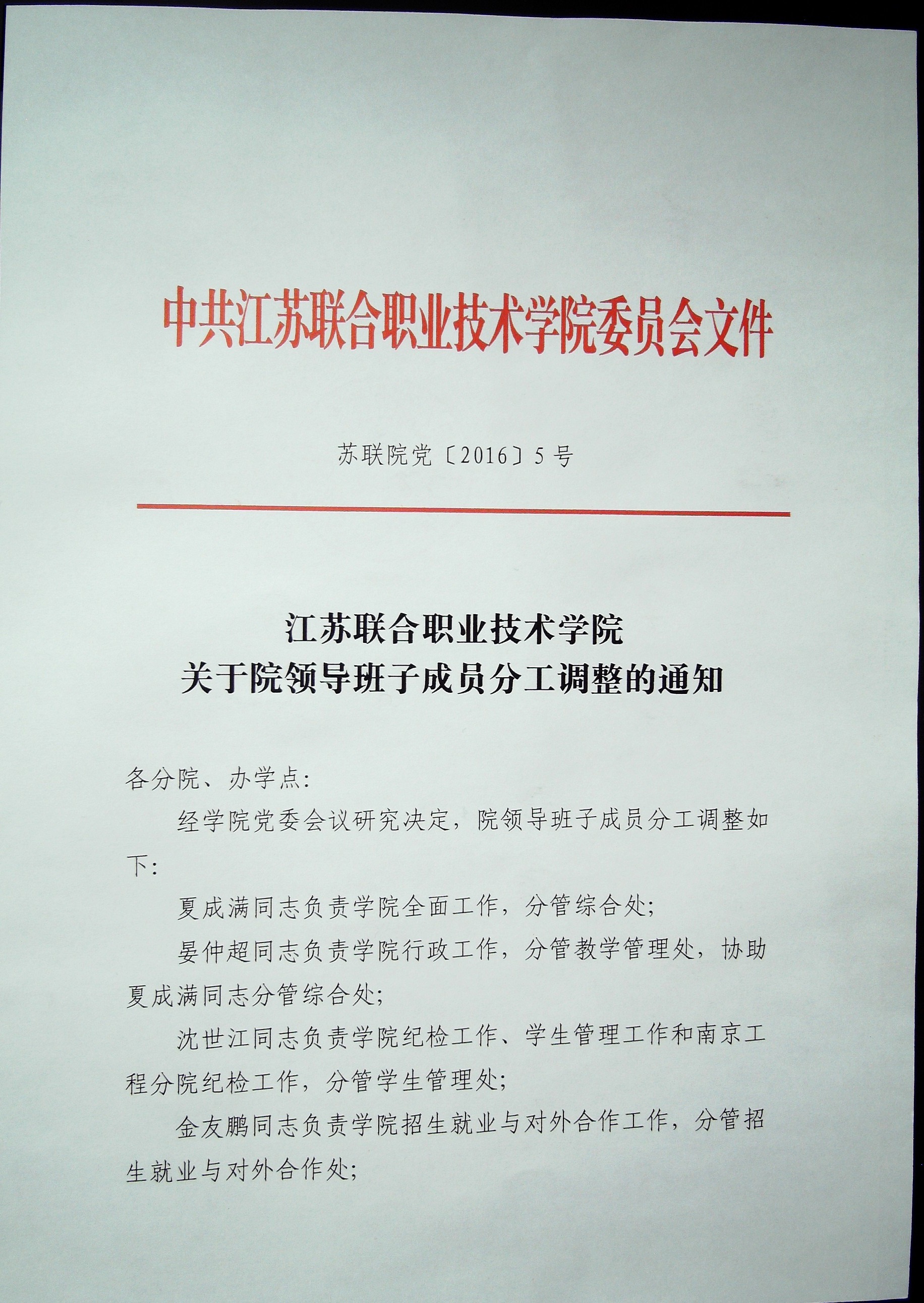 中共江苏联合职业技术学院委员会文件