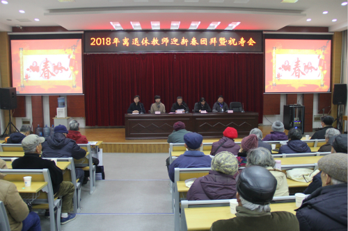 2018年1月17日上午9点45分,无锡旅游商贸分院在第二阶梯教室召开了2018年离退休教师迎新春团拜暨祝寿会。学校党政工团主要负责人出席了大会。