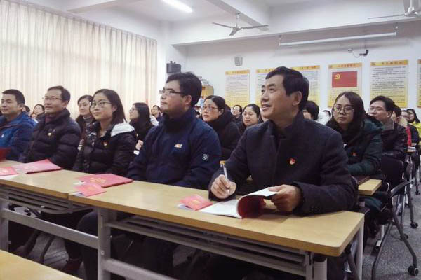 各支部党员佩戴鲜亮亮的党徽、带上红艳艳的十九大学习笔记本与党员活动证,精神饱满、认真聆听,党员所属部门的所有其他教工也参加了集中学习,大家都接受了一次深刻的党性教育与思想洗礼。老师们纷纷表示,要继续深入学习党的十九大精神,用习近平新时代中国特色社会主义思想武装头脑,以实际行动为学校融合、转型、升级贡献自己的力量!要坚定文化自信,引导、激励武职学生在中华民族伟大复兴的历史进程中建功立业!