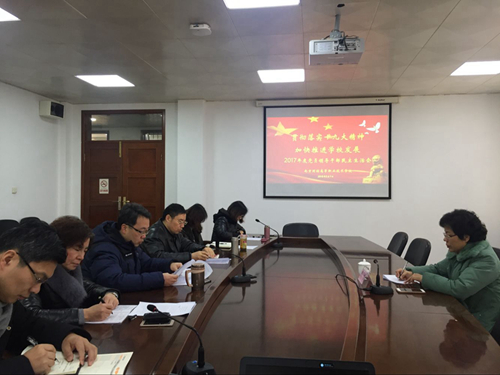 姚峰校长对教育局领导给予学校领导班子的充分肯定和精准指导表示了衷心的感谢,今后将按照市教育工委的要求,以学校“十三五规划”为引领,从制度融合、人员融合、专业融合、文化融合、情感融合着手,打造新学校创新发展工作路径。