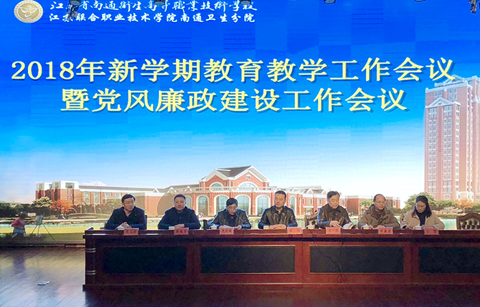 3月3日下午,南通卫生分院2018年教育教学工作会议暨党风廉政建设工作会议在图文信息中心二楼报告厅隆重举行。全体校领导出席会议,会议由沈建新副校长主持。