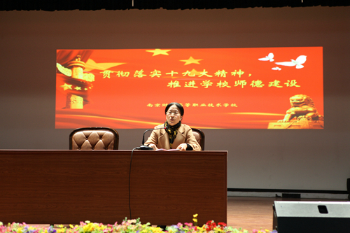 为认真学习贯彻十九大精神,推进学校师德建设,2018年3月16日下午3点,南京财经分院在莫愁路校区大礼堂集中召开全校教职工师德培训会。会议由学校党委许洁副书记主持,全体教职工观看了《中国最美乡村教师颁奖典礼》,并认真聆听了学校赵春燕老师的《职业礼仪》专题讲座。