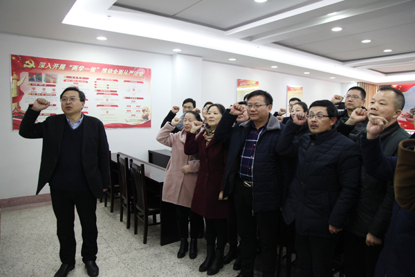 “我志愿加入中国共产党,拥护党的纲领,遵守党的章程……”在学校党委书记茆艾磊同志带领下,一支部全体党员高举右手,庄严宣誓。铿锵有力的宣誓声响彻会场,激昂洪亮的12句入党誓词传达出身为中共党员的神圣感和自豪感,让现场党员深刻感受到肩上的责任和使命。