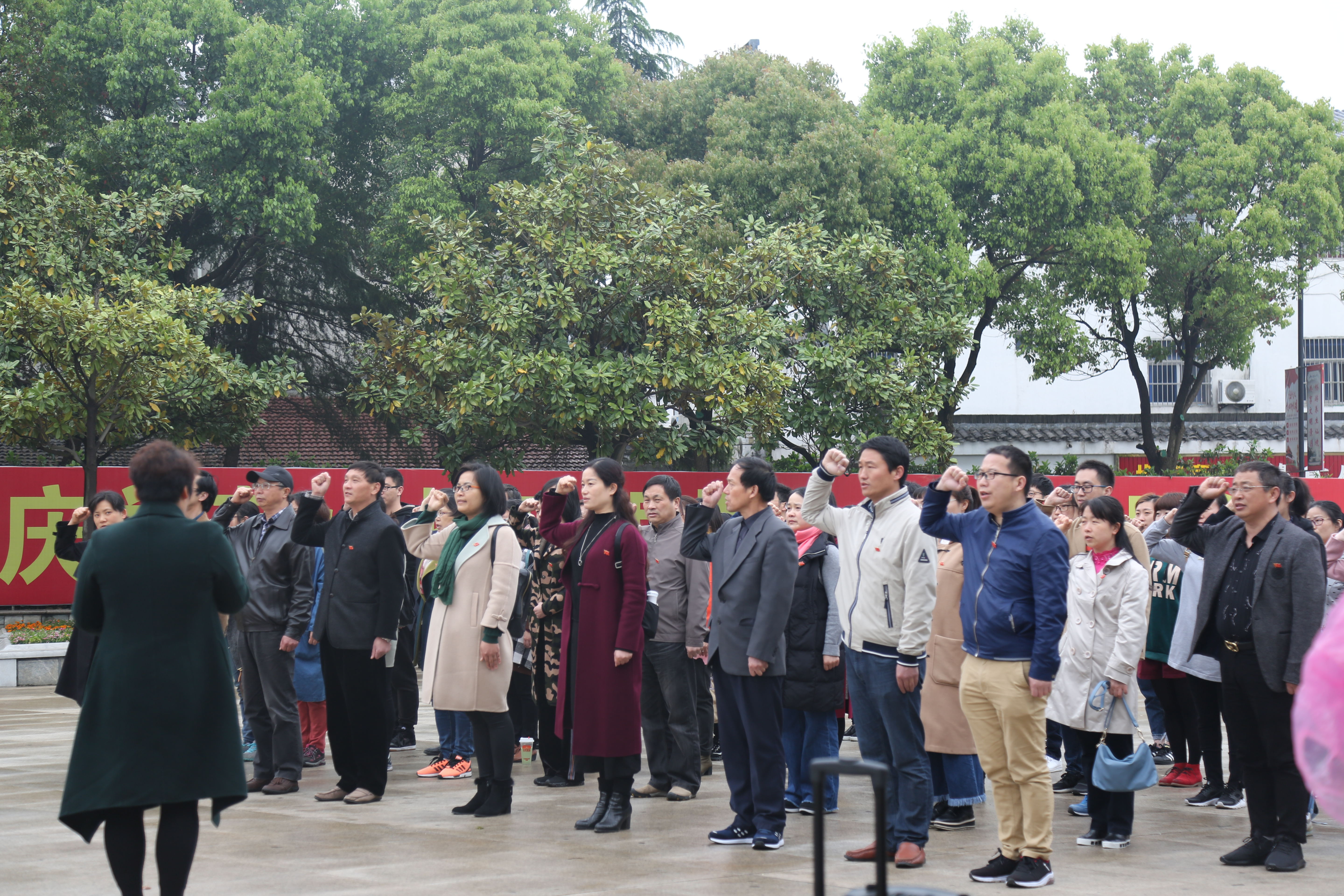 接着,校党委委员魏霞同志带领全体党员在茅山新四军纪念碑前,面向党旗重温入党誓词,进一步坚定了革命的理想信念。每一名党员教师再一次深思“当初入党为什么、现在在党做什么、今后为党留什么”。