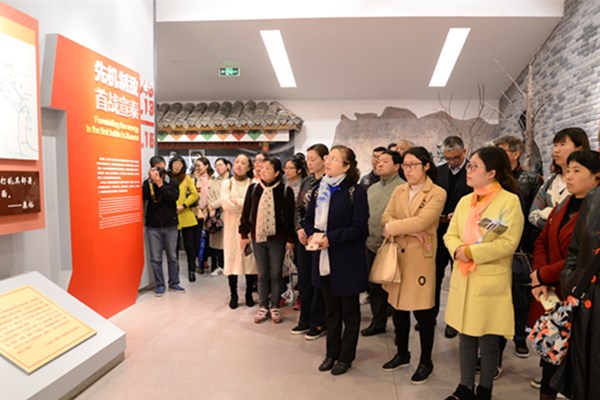 随后,党员和盟员们在纪念馆讲解员的带领下参观了“七战七捷纪念馆”。大家仔细观看,认真听讲,时而驻足,时而提问。深深敬佩和感动于粟裕大将等指挥员的高超的指挥艺术、指战员们不畏强敌不怕牺牲的大无畏精神和当地民众倾力支前的拥军爱党热情。