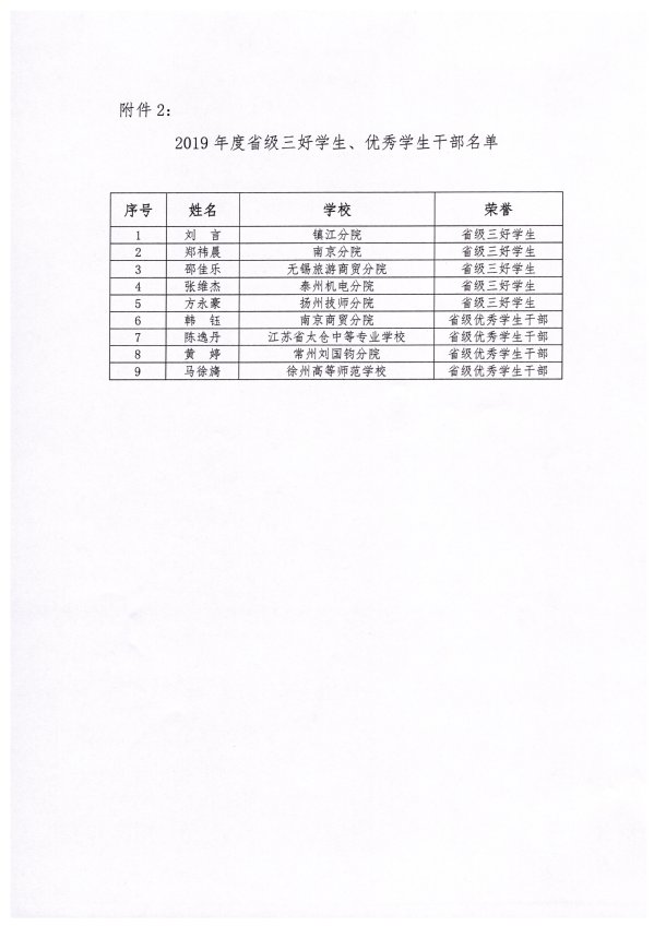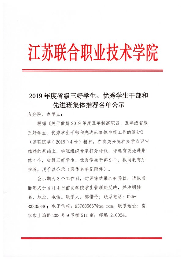 2019年度省级三好学生、优秀学生干部和先进班集体推荐名单公示