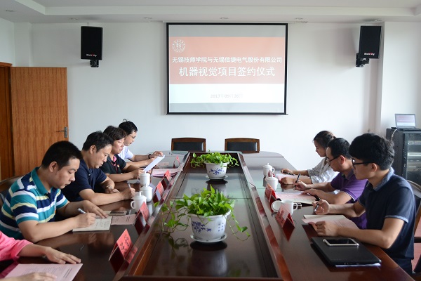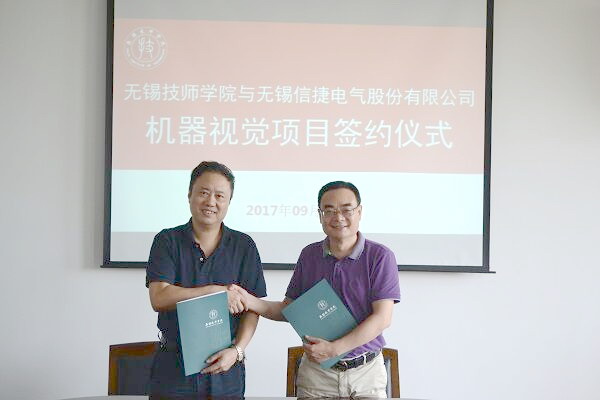 9月26日上午,无锡立信分院与无锡信捷电气股份有限公司举行“机器视觉职业技能培训合作项目”签约仪式。分院党委书记、院长巫伟刚与无锡信捷电气股份有限公司副总经理过志强代表校企双方签字。仪式由副院长杨健主持,电气工程系主任魏宁宇、教务处副处长周研及电气工程系部分骨干老师、信捷电气股份有限公司项目成员王正堂、包林美参加了签约仪式。