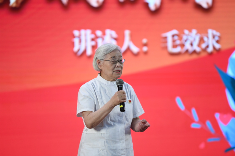 81岁高龄退休教师毛效求也来到了活动现场,她说:“虽然退休已经20多年了,但一直很关心学校的发展,希望学校能培养出更多热爱祖国、热爱事业、精通业务的人才。我欣慰地看到,我们南京卫生分院做到了!四个战疫故事,深深感动着我。我想起当时那些孩子们的模样,就像现在的你们一样,青涩,稚嫩,如今却成为了白衣战士。现在的他们就是未来的你们,相信未来的你们也一定会和他们一样。我为你们感到骄傲与自豪!南京卫生分院百年,因为我们,因为你们,因为一代又代南京卫生分院人,生生不息,接续发展,创写一个又一个辉煌篇章。”