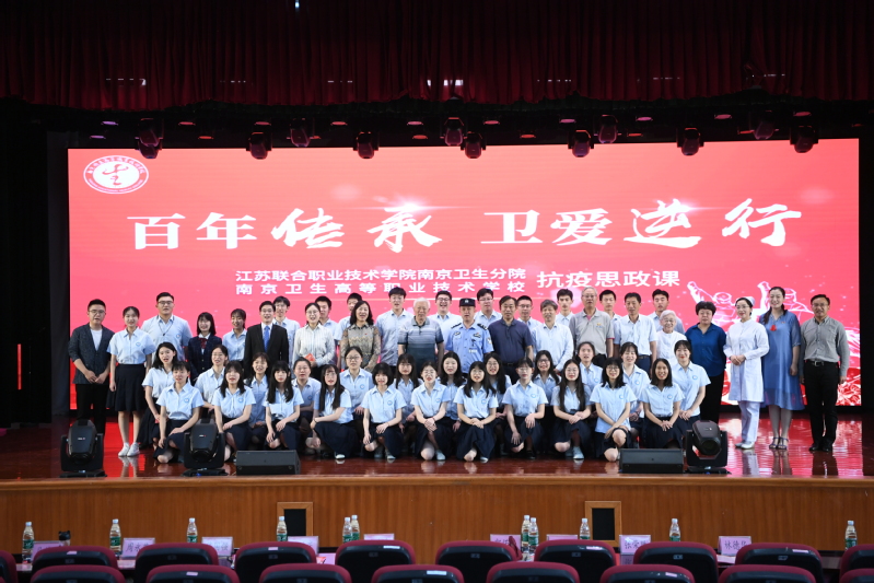 2020年6月1日下午,南京卫生分院于得英楼三楼报告厅举办“百年传承卫爱逆行”2020年南京卫生高等职业技术学校抗疫思政课。江苏联合职业技术学院副院长陶向东,江苏联合职业技术学院学生管理处处长郭偌伶,南京市教育局组织处副处长、三级调研员茅国强,南京市教育局宣传与德育处二级调研员马维庆,南京市教育局机关党委三级调研员周永燕,南京高等职业技术学校校长张荣胜,栖霞区燕子矶街道派出所所长谢兵,南京延安精神研究会副会长、原南京电大党委书记孙洪庆,南京延安精神研究会副秘书长、原南京财经学校党委书记马苏文,南京市职教教研室副主任林德华,南京市职教教研室科长朱红忠,南京市职教教研室办公室副主任王有月以及兄弟院校领导莅临南京卫生分院指导。