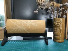 件有水墨神韵的作品决非易事,需要扎实的基本功。我们设计了两个主题:一是打牢基本功——“磨刀”和“铲底”;二是学习留青竹刻的整个制作流程:打稿、走线、刮面、铲底、采皮、挑腹、打磨等工艺环节。我们主要通过集中授课,一对一指导,课堂作业、课后跟进与反馈、定期开办作品展等方式来实现,每一位学生都有一个“个人成长进程表”,记录学生作品进度和收获。在实践活动中,他们摸索出磨刀、铲底等方面的工艺技巧,提升了能力,锻炼了意志。同时,其光洁如玉的竹肌、刀划过竹片的锐意轻快,都给学生美的享受。