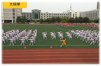 (6)在传统体育中锻炼美。学校以中华传统武术为依托,编创新式武术操,创新改革课间操形式,增强学生做操锻炼身体的积极性。以八段锦、五禽戏、太极拳为基本内容,组织团体大型表演活动,让学生在强身健体中传承经典。
