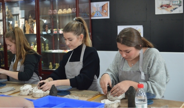“匠心•传承非遗工作坊”依附学校艺术实训中心和艺工结合人才培育基地建设,目前建设有惠山泥人、留青竹刻、刺绣、版画、剪纸、陶艺共计6个非遗工作坊,每个工作坊都有独立的实训场地,全部建设有操作区、作品展示区、材料及工具摆放区、储物区等,共计240工位,完善的设施设备保证了教学实践的正常开展。