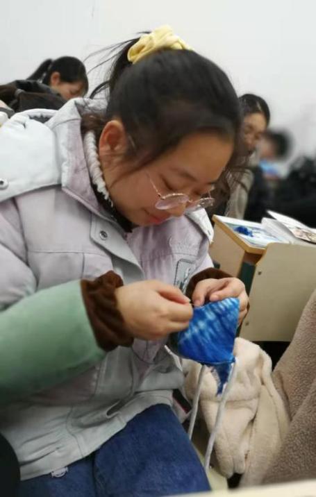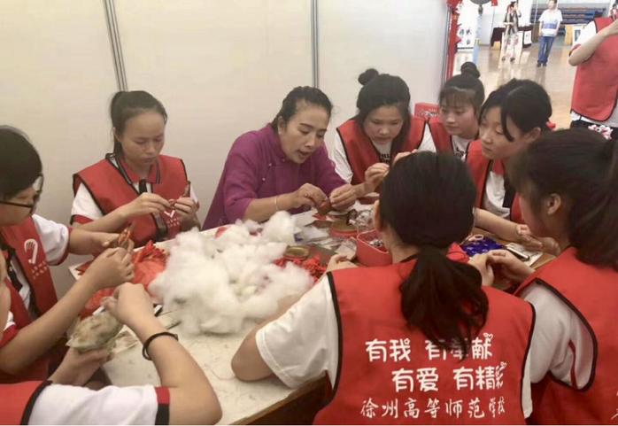 图2 文化和自然遗产日“徐州香包”传承人井秋红在我校进行现场教学