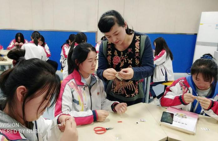 图4 美术课堂教学中教师指导学生动手制作“徐州香包”