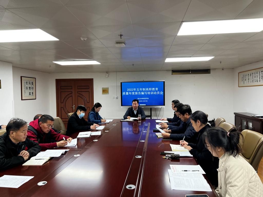 (来源:宿迁高等师范办学点)为了高质量完成五年制高等职业教育质量年度报告编制工作,根据江苏联合职业技术学院《关于做好2023年学院五年制高等职业教育质量年度报告编制、发布和报送工作的通知》(苏联院研〔2022〕15号)要求,质量管理与评估中心制订了《宿迁高等师范学校五年制高等职业教育质量年度报告(2022)编制工作方案》并成立领导小组。11月17日下午,学校召开2022年五年制高等职业教育质量年度报告编制动员会,校党委书记、校长韩勇、党委委员刘春水、高凯及相关部门负责人参加会议,党委委员高凯主持会议。