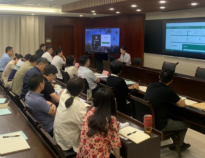 会上,平台技术支持单位相关人员给全体参培人员分发了账号和密码,做了用户管理及权限配置、平台业务功能模块操作等方面的培训讲解和辅导答疑。