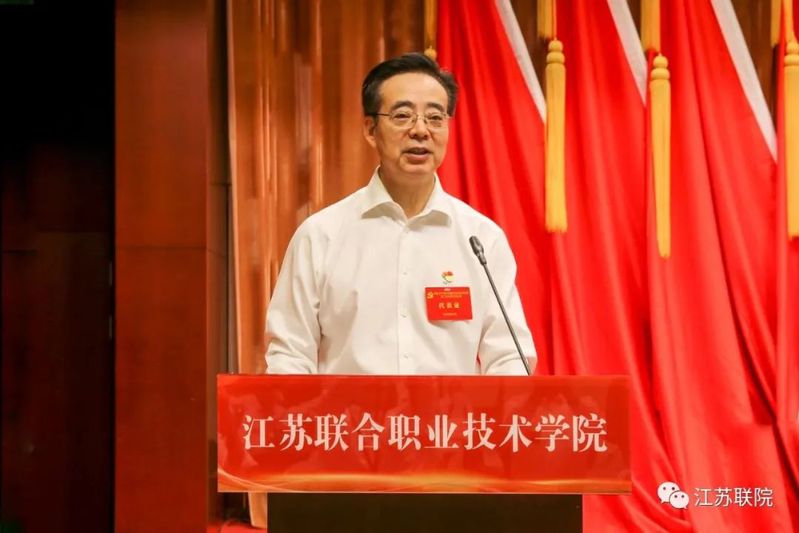学院党委书记刘克勇代表中国共产党江苏联合职业技术学院第一届委员会向大会作了题为《凝心聚力守正创新勇担使命奋力谱写五年制高职高质量发展新篇章》的报告。