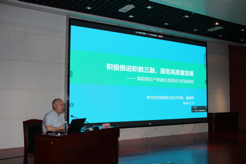 本次培训内容丰富、形式多样。期间,邀请常州纺织服装职业技术学院党委书记吴访升教授作了《积极推进职教三融,服务高质量发展——高职院校产教融合型路径与机制探索》主题报告。19日上午,赴常州机电职业技术学院进行实地调研,参观了学校实验实训基地和产业学院。常州机电职业技术学院副校长周庆元及部分相关职能部门负责人介绍了学校在高水平专业群建设、专业教学资源库建设和产业学院建设等方面的经验做法,并与秘书长们进行深度交流。两天的培训务实、紧凑、高效,将对专(课)指委工作产生有力的推动。