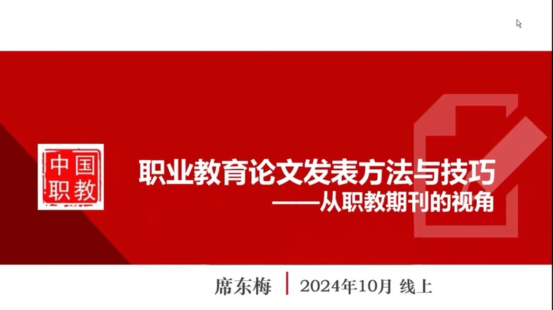 席东梅主编作了《职业教育论文发表方法与技巧》专题报告,席主编从核心期刊资深编辑的视角出发,结合自身工作经历和职业教育最新理论研究成果,围绕职业教育论文撰写、职业教育论文投稿技巧、职业教育论文评价与发表进行了详细阐述。郝天聪副教授作了《职业教育课题研究实务》专题报告,详细介绍了职业教育类课题研究过程中需要注意的11个方面内容,并就基于课题的教改方案设计,如何孵化教学成果作了案例分享。