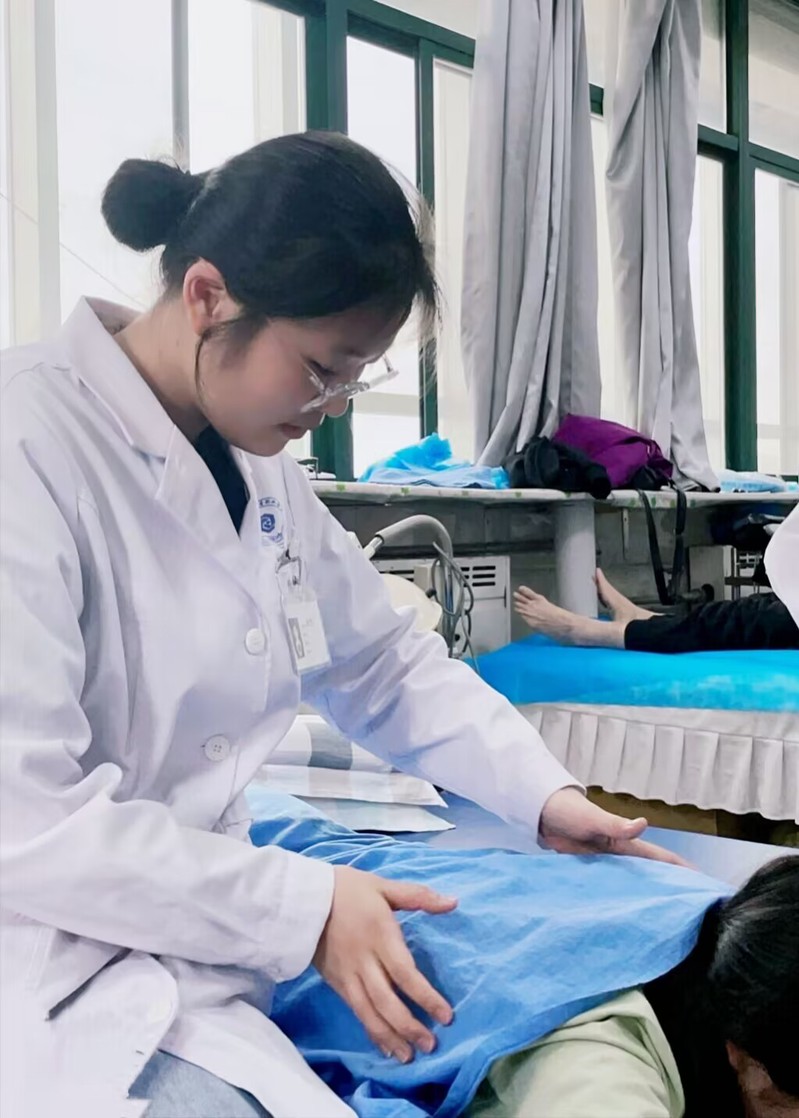 在刚步入药校的怀抱,管静雯对于马上要开启的在异地他乡的职校求学之路还没有完整的安排和计划,整个人还沉浸在高中落榜和对未来的茫然和无措之中。直到她走进校园,看到校园墙上挂着一张张优秀学子的图片和简介,看到榜样们凭借自己的不断努力攀登,取得了属于自己的美好人生,她的心中充满了向往和期待,也慢慢有了对未来的规划蓝图,于是她开始刻苦钻研专业知识,全身心地投入到学习中。学习上,她积极主动,勤奋好学,怀着探求知识的心态主动解决问题,善于思考和质疑,勇于探索。在校的每个学期,无论是学习成绩还是综合素质评价,管静雯都位列年级第一,并被学校评为“康复治疗技术专业形象代言人”。